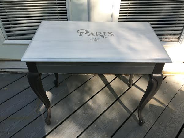 - Paris stenciled with Sunday Silver chalk-based paint.