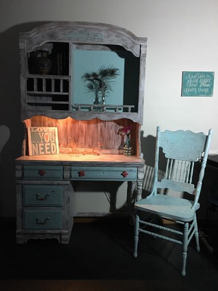 I put off doing anything with it for months because I wasn’t looking forward to trying to paint inside those little cubbies on the hutch. I even sold it to a painting friend because I wanted it out of my living room. But then….I ran across a post from a lady describing how she had painted a desk using the dry brush technique. And, wow!!!! It was the same exact desk I had. They say imitation is the greatest form of flattery, but I did show her what I had done when finished. She loved it! She laughed and said she thought it was her piece at first. So I thank her sincerely for the inspiration to try something like this as I never had attempted anything like it. It was time I bought my desk and hutch back from my friend. I was sure glad she still had it. : )