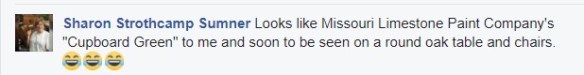 This meme begs for my answer on that and any color I see ever since I started painting furniture with chalk-based paint, but especially since we started selling Missouri Limestone Paint Company’s paint. I see EVERYTHING around me as one of their colors.