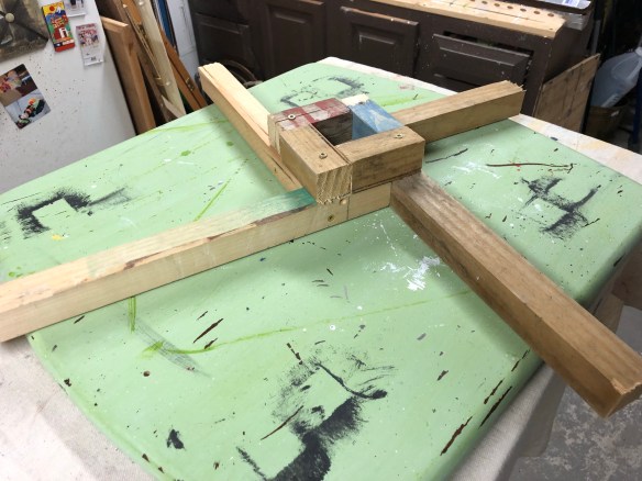 But now, we have 4 legs to paint. I said, “Danny, I wish we had something we could use to hold the table leg up so I can paint it.”