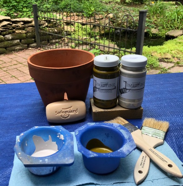 I ran across the idea of using soap as a distressing medium so thought I’d try it, creating a tutorial as I worked. It would either turn out fine or I’d just have to get another pot and try again. I found this pot under our deck area so I was good to go.