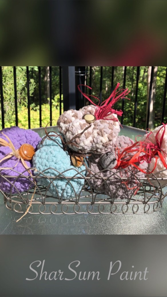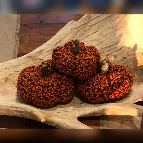 I have been obsessed crocheting pumpkins this fall. Best of all, I have had some success selling them and getting custom orders. I also have given some as gifts. My eight year old granddaughter texted me on her family text app and ordered (using the word please) one for her teacher and her brother’s. Lol. That means I will need to make one for their cousin’s teacher, too. π
