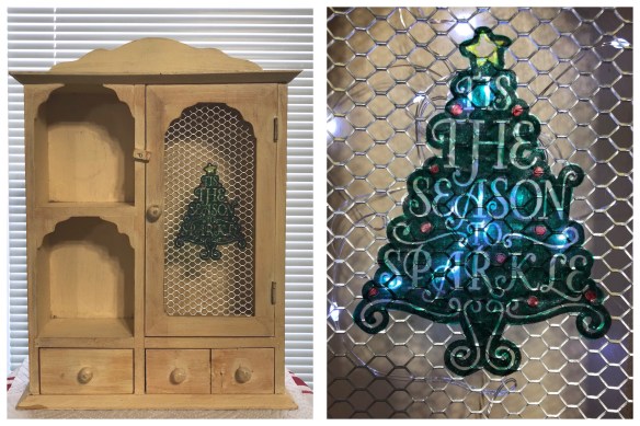 I ran out of Mason Jars and still had one transfer I wanted to use, so I raided my jewelry box hoard (yes, I admit it … I hoard jewelry boxes and Ok…. furniture, too). I have to! I sell chalk-style paint so I have to paint all these things …eventually, so in the meantime I hoard. 🤷🏼♀️