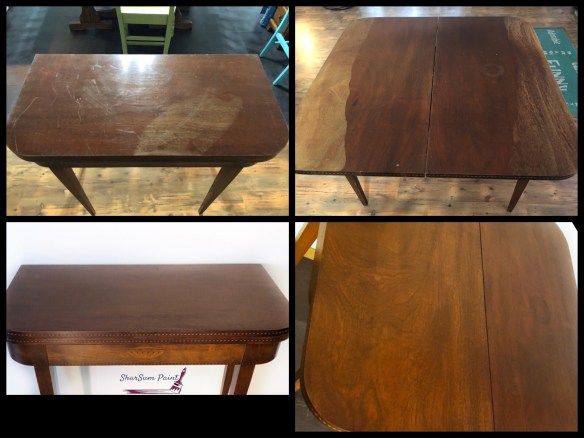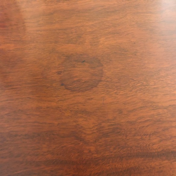 Our latest project we lovingly brought back its original glory. It came to us in very good condition structurally and physically everywhere except on the top and the flip top. Someone, sometime, somewhere spilled something on it and it took off the finish in several areas. There was also a water spot.