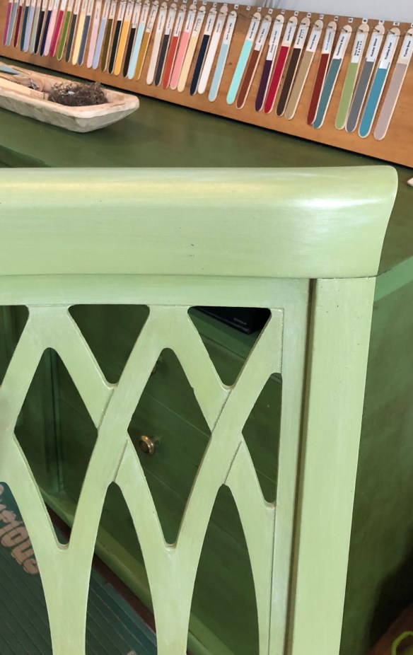 Our Missouri Limestone Paint Company Chalk-Style Paint … Sour Green Apples … a wash of January … champagne glaze ….sealed with Varathane Polyurethane.