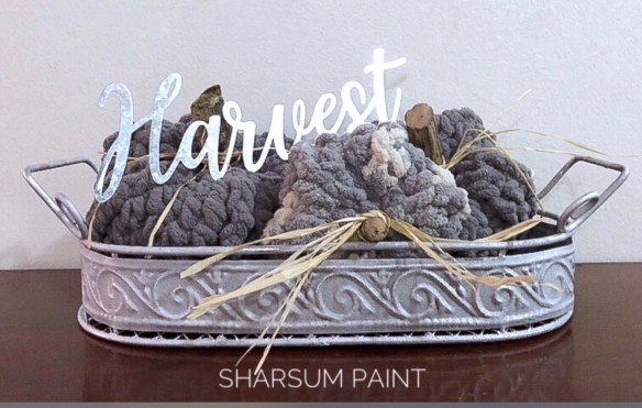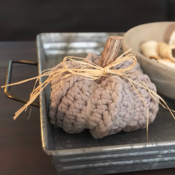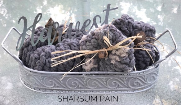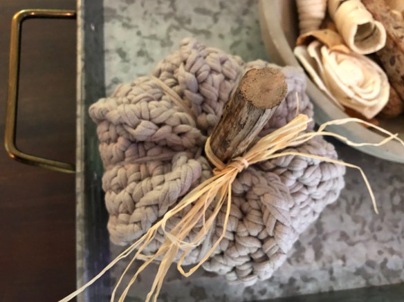 This arrangement is also for sale – $59.99 plus shipping. These pumpkins are crocheted with chenille yarn.