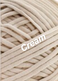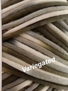I love the yarn. It is a Jersey t-shirt type material that is a dream to work with. This color is called clay, which has a grayish cast. I also will be making them in cream and a variegated color with these two colors combined with a brown.