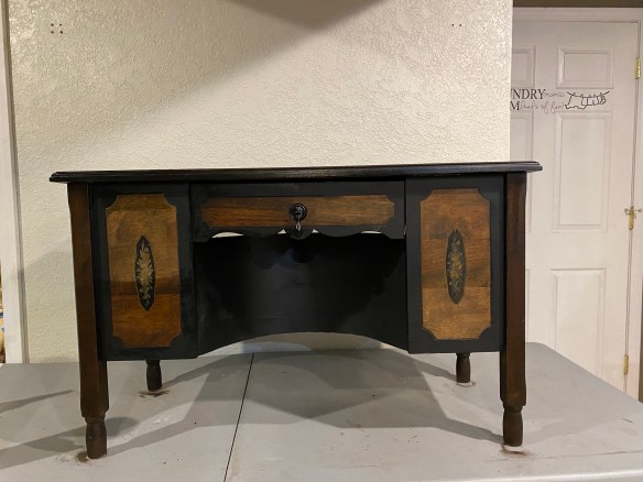 I just have to show the final results first. Some pieces just shouldn’t be painted. This small depression era vanity is one of them. She only stands about 22″ tall, but isn’t she beautiful now she’s had some tender loving care? She is still soaking up her “antique improver solution” but I couldn’t wait to share her gorgeousness. I will share a staged photo of her when she is completely finished and ready to show off.