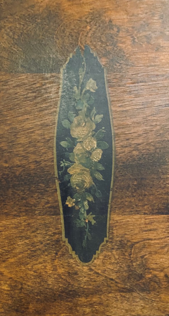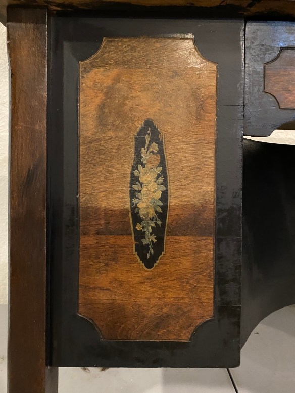 The following photo shows the back of the piece, which has me perplexed. It is open and has a shelf. Is it secret storage? I need to do more research on that feature.