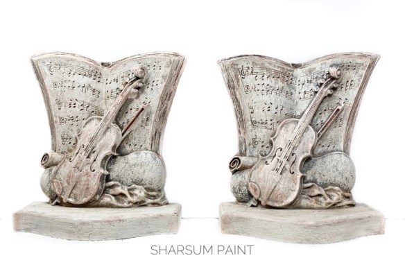 * Once that dried, I waxed it all with clear wax and buffed and then highlighted them with dark wax and buffed to give them an aged look. I then applied a bit of copper metallic wax in several areas to bring out more detail. Just look how the music notes seem to jump off the page now!!!