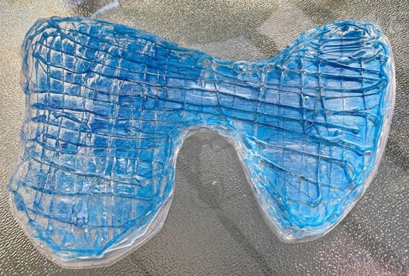 I saw an idea on Pinterest and thought it would work, and it did. I used a plastic sheet like a report cover and then drew out an outline and then just made a thick border of hot glue and then just created a grid like inside so my gems wouldn’t fall out and get buried again. I painted it with some colors of water with our MLPC paint and even added a little glitter paint I had. You were supposed to be able to peel the glue formation off the plastic when dry and you can, but I chose to cut around my form and keep it so I would have another layer for my gems.