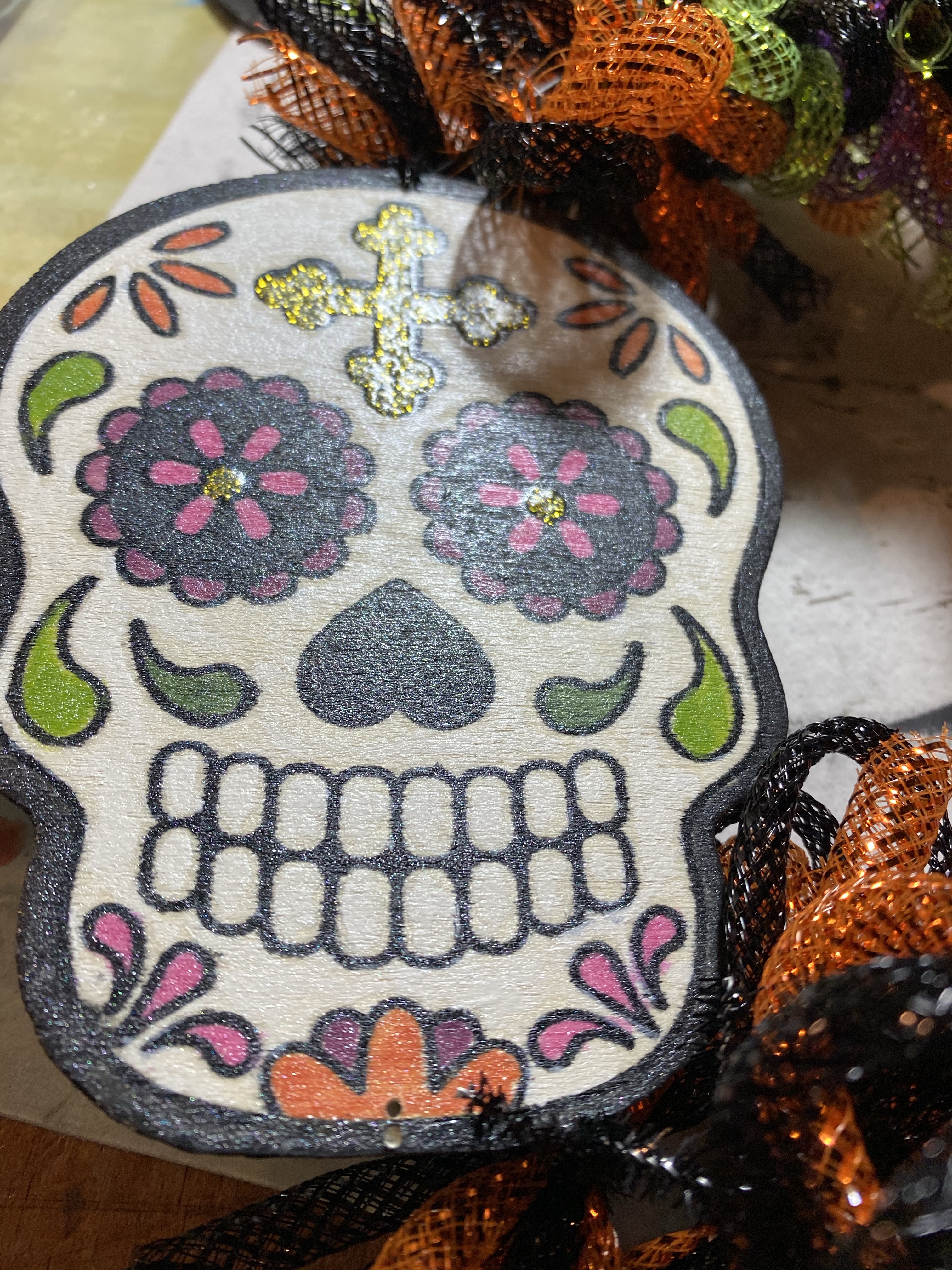 I made a Day of the Dead wreath from Dollar Tree materials, including the mesh tubing. I love how it turned out but it was a big one and took literally all day to make the wreath and paint the skull. See pic of it at the end. I used this tutorial to make the big one: https://gracemonroehome.com/how-to-make-a-deco-mesh-loop-wreath/