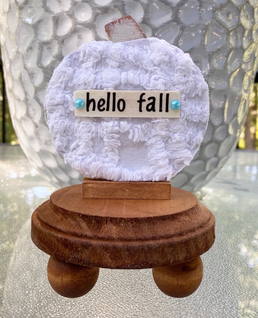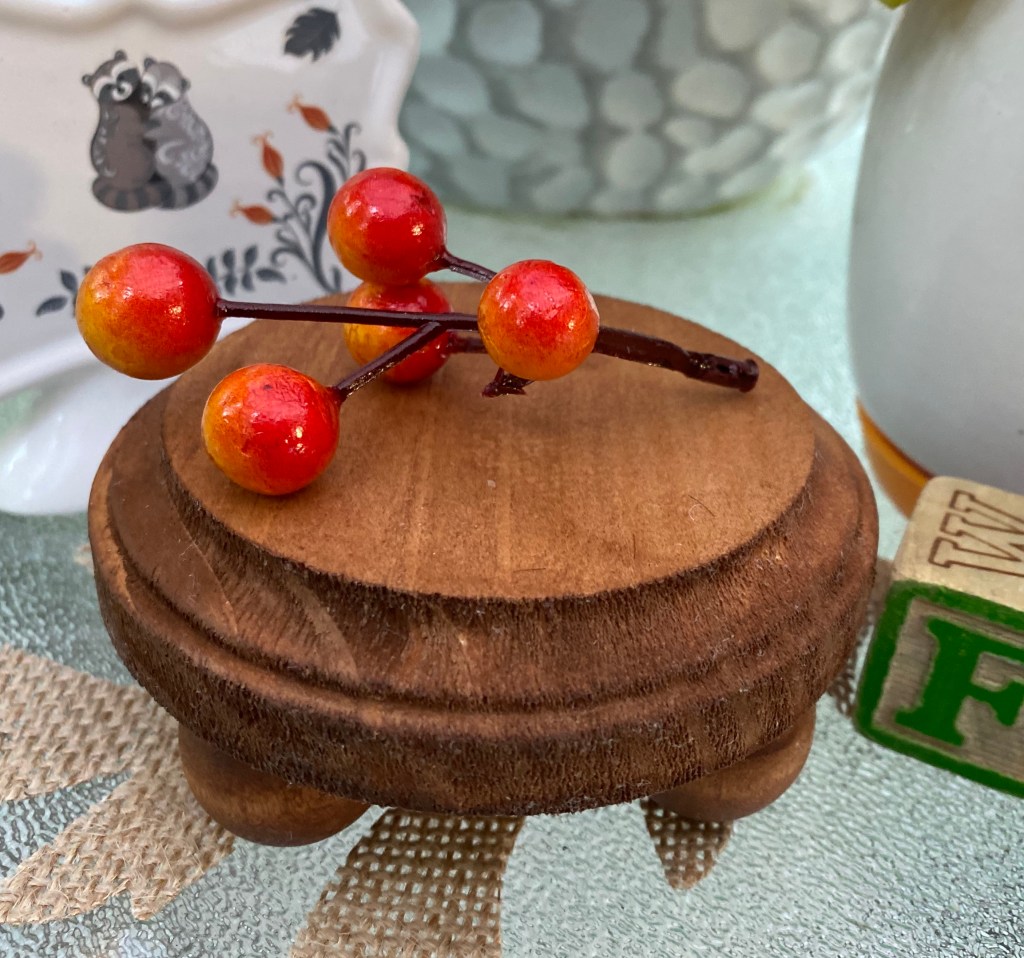 You won’t believe it but this sweet little ceramic vase with the silicone base started out in life as some kind of egg cooker. (I still have the lid to save for another project sometime.) 😳 You never know what you will find thrifting. 😁 I filled it with some fall flowers and a fall pick. So pretty now.