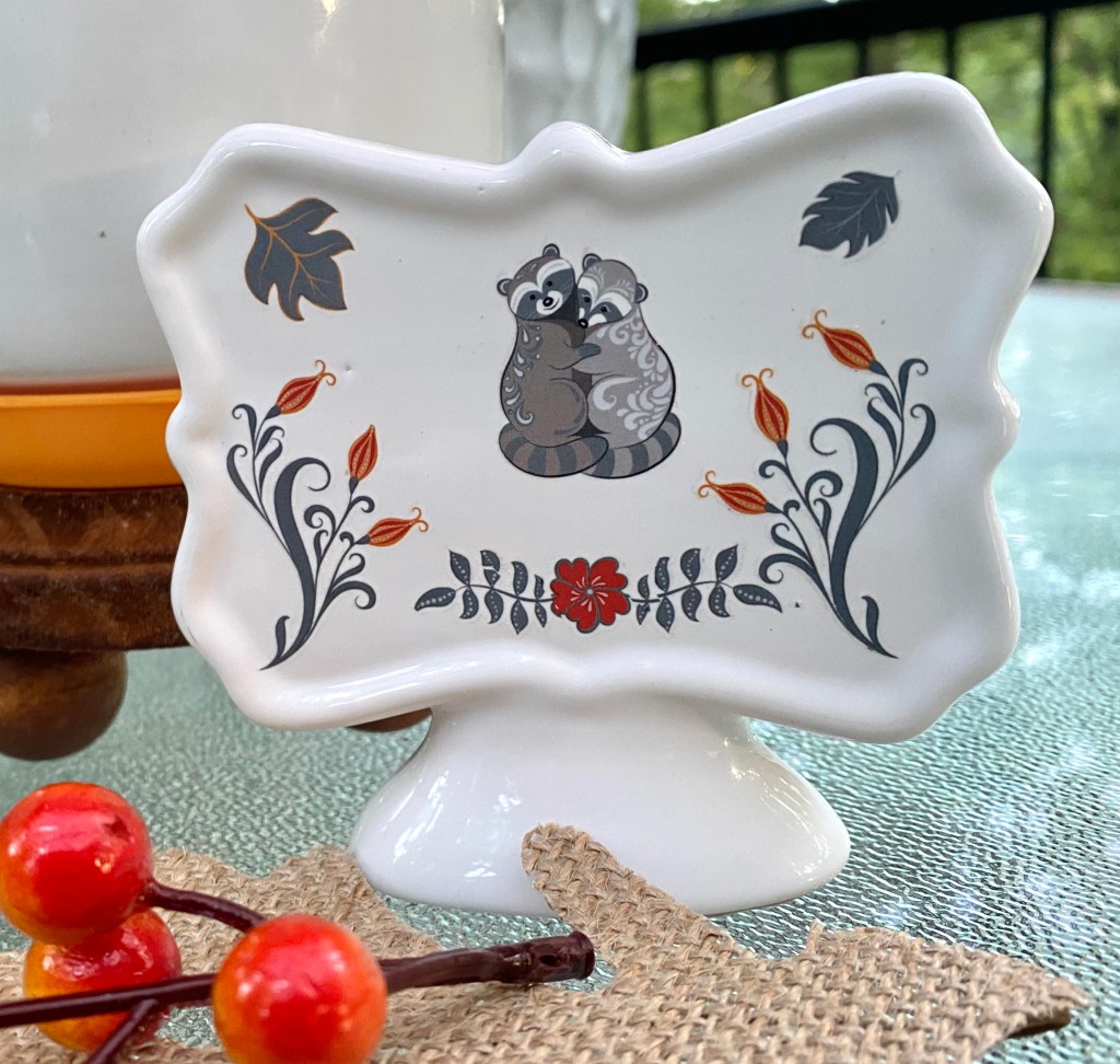 And the final project I actually did last night. This was a little Dollar Tree ceramic blank place card stand. I added these sweet little Dollar Tree woodland transfers. The colors and the woodland animals work well for fall.