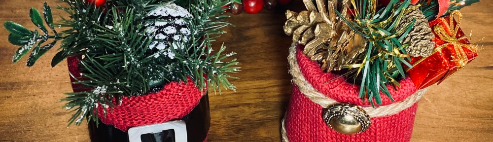Of course I had to use some of one of my ugly sweater sleeves to cover these Oui yogurt jars for cute Christmas decor.