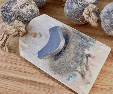 This morning it was dry enough to work with. Theoretically, it would take about 3 days to dry completely, but I have painted air dry clay before it was completely dry in the past so I knew I could. I will still let it air dry now for 3 days before doing anything more with it. I used my aged stone technique to make the clay beads look like they were made of cement. I painted the beads with our Missouri Limestone Painting Company chalk paint in “Gray Goose”. I added some baking soda and kind of pounced it on to give the clay the texture of stone. Once dry, I applied liming wax then wiped excess off.