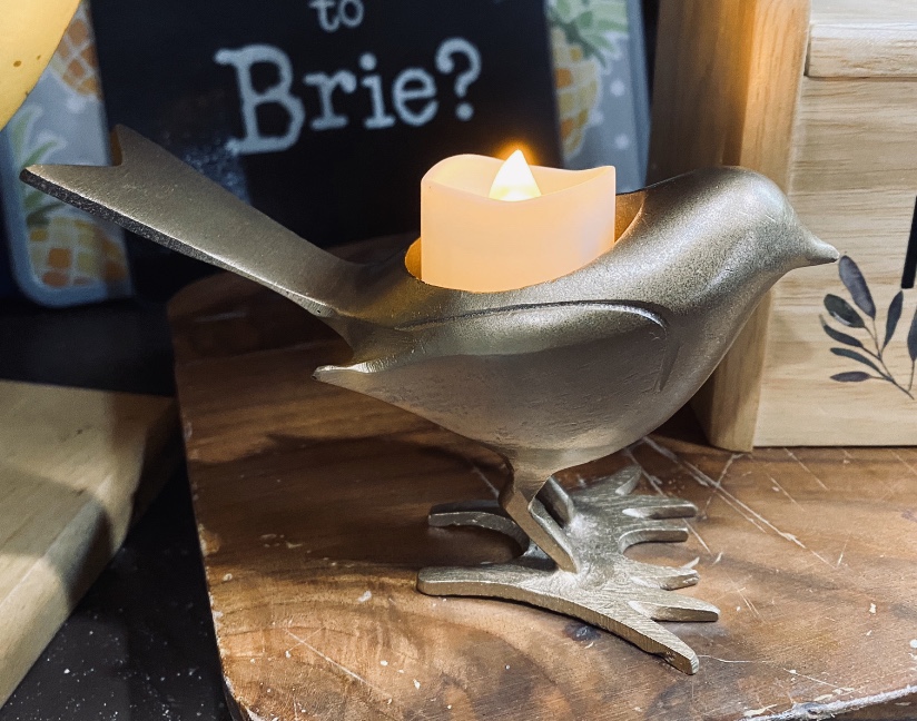 I also recently thrifted this solid metal bird tea light candle holder. After immersing myself in modern boho decor, I knew I had to spray paint him metallic gold. 🙂