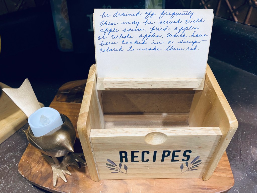 I was in Danny’s workshop area and happened to see this cute recipe box I thrifted so long ago I didn’t even remember it. Who knows why it was in there. 🤷🏼♀️