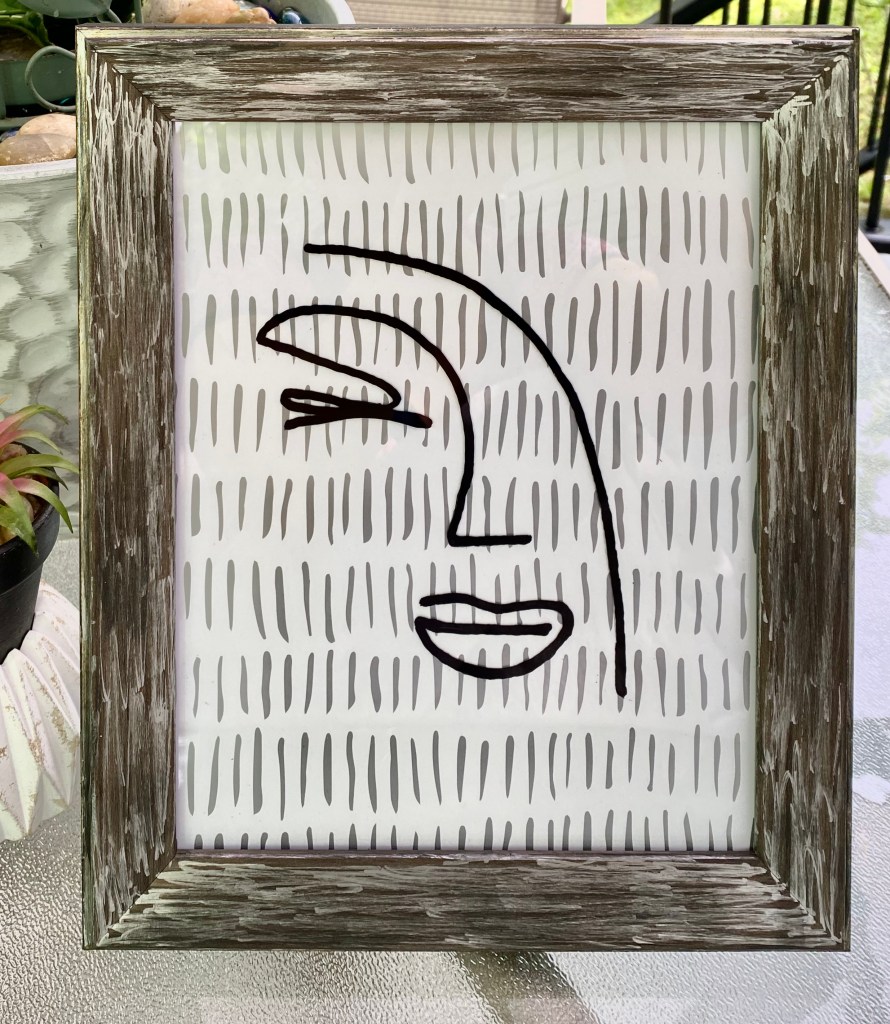 The graphic is from a free vector site called vecteezy. I did a search for face line art. I traced this graphic on glass with a black permanent ink Sharpie.
