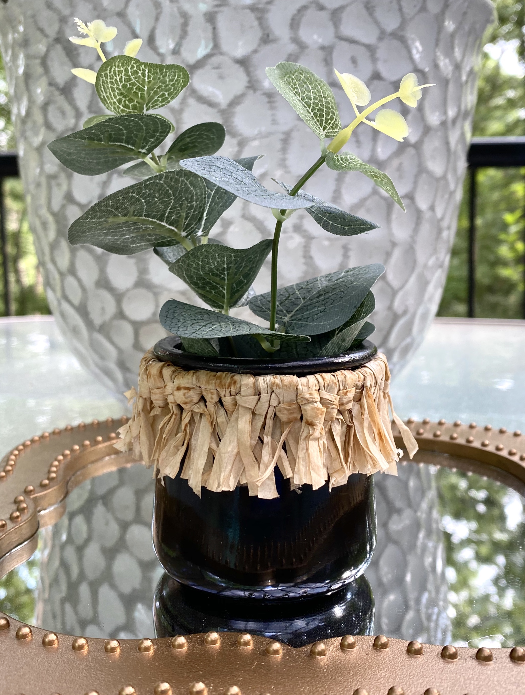 This beautiful boho greenery arrangement is just another way I have found to use a Oui yogurt jar.