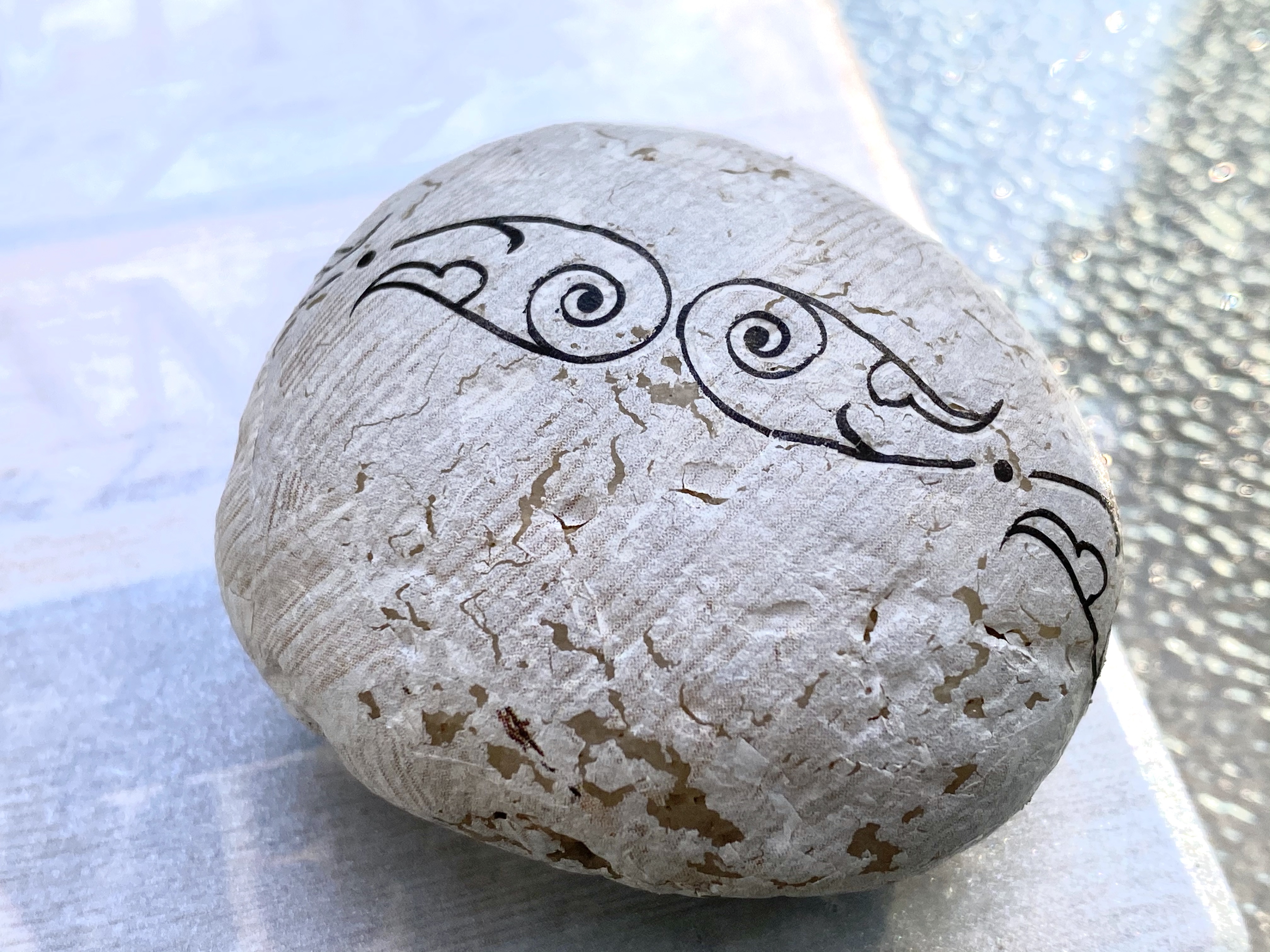 I had a rock and some of that transfer leftover. I looked at the rock, then looked at the transfer, then thought ….I wonder what would happen if I covered the rock with it? Wow! I love the look! I may never paint another rock! Well, as long as I can still find this transfer. Lol