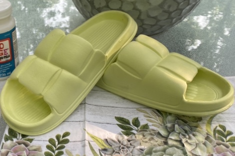 I had purchased this pair of slippers from Temu. There were a very bright greenish yellow color and I wasn’t sure I liked the color until ….. I added the napkin to them. Wow!