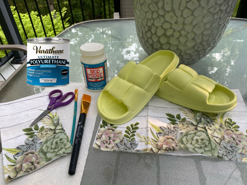 Early this morning I happened on a Pinterest post that showed a pair of slippers similar to ones I just purchased from Temu and how the crafter decoupaged them with napkins. Of course, I had to try it and am so glad I did!