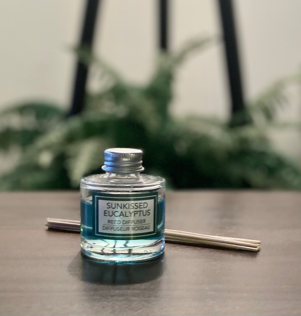 Then I remembered I bought a Reed Diffuser at Dollar Tree awhile ago and hadn’t used it yet. It had the Eucalyptus scent.