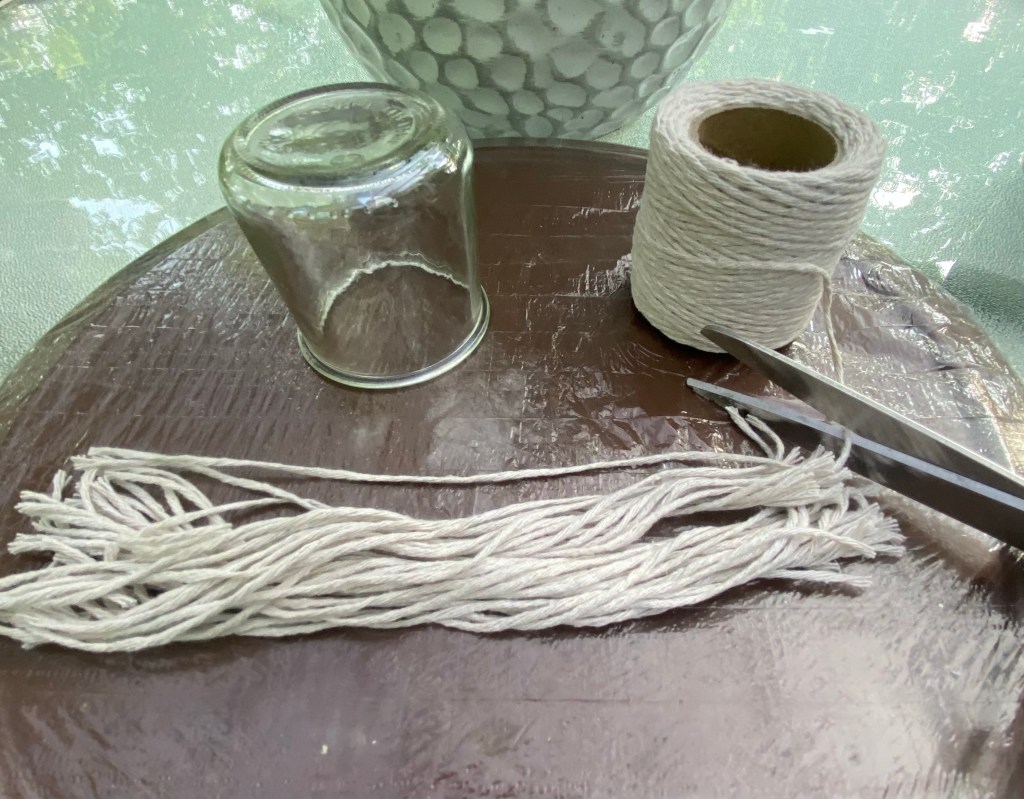 I took the ball of string I bought at Walmart and cut maybe 50 12” lengths of string. I might have used more or less, so you could cut less and then cut more as you go.