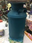 Donna’s plant stand and…..hard to see…..but a concrete bird partially (hidden by the drink tumblers), painted in “Something Blue”.