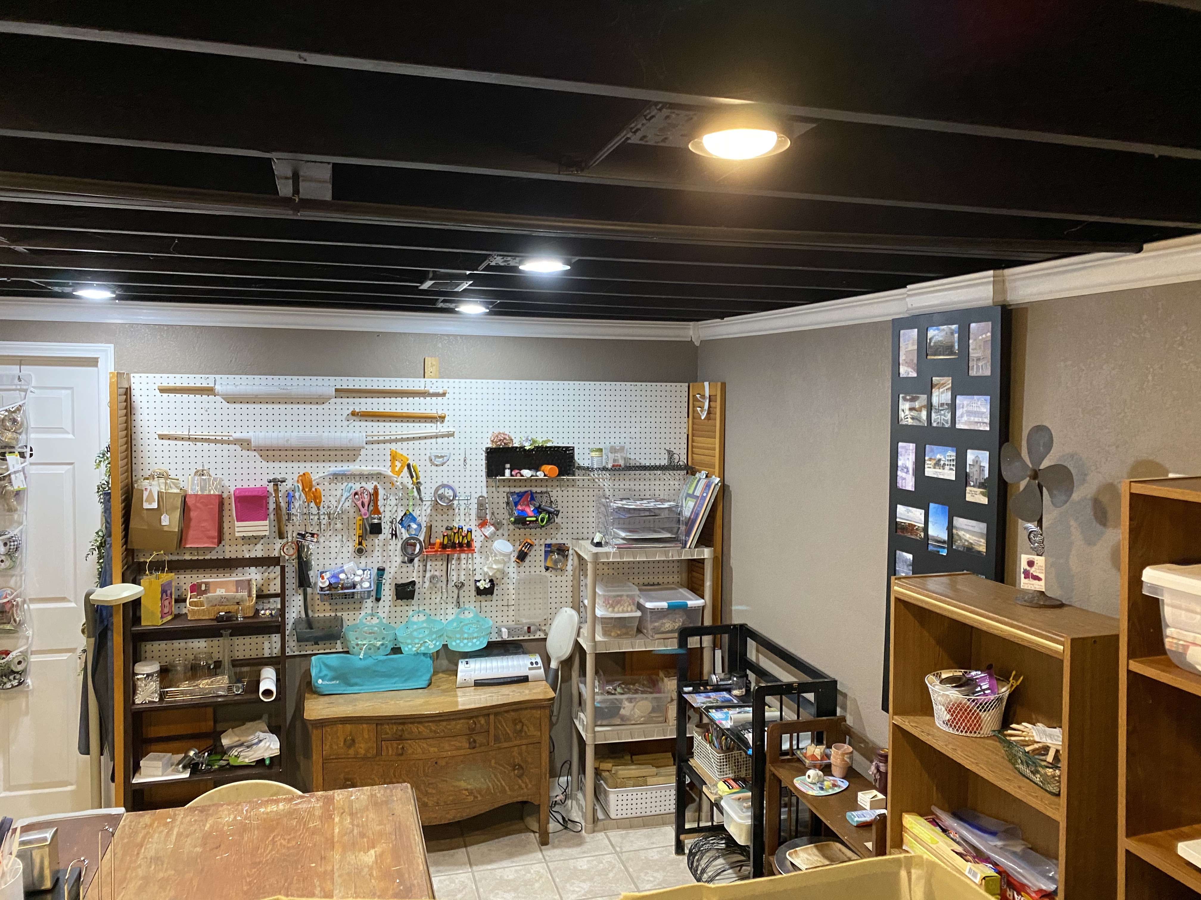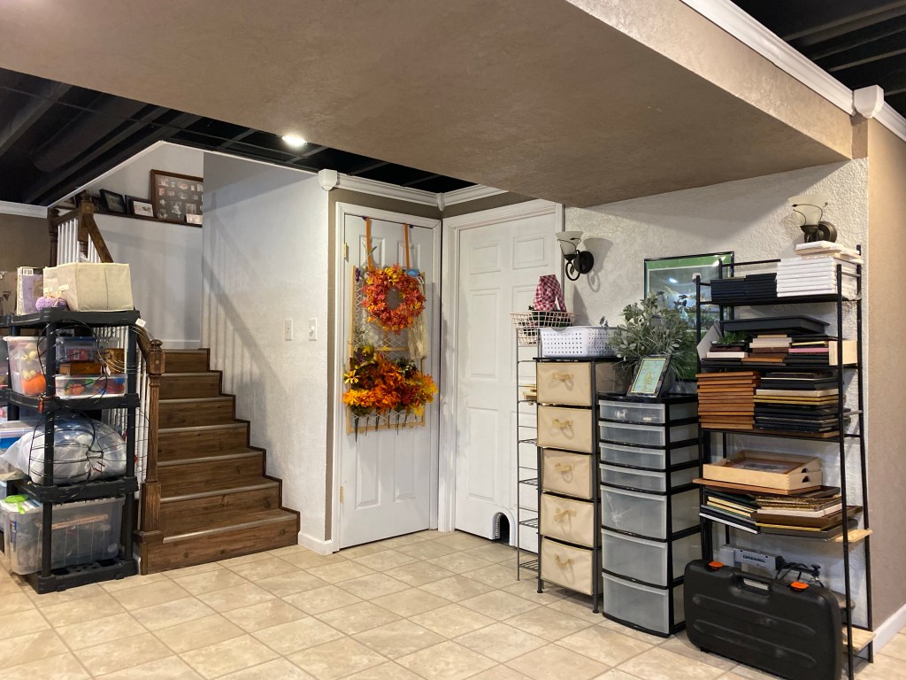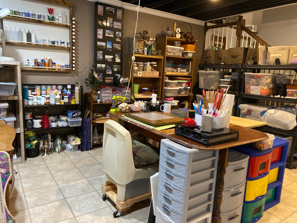 Update: We have, finally, for all intents and purposes, finished decluttering the basement and organizing the craft area. I still have some organizing to do but happy with how it is turning out!