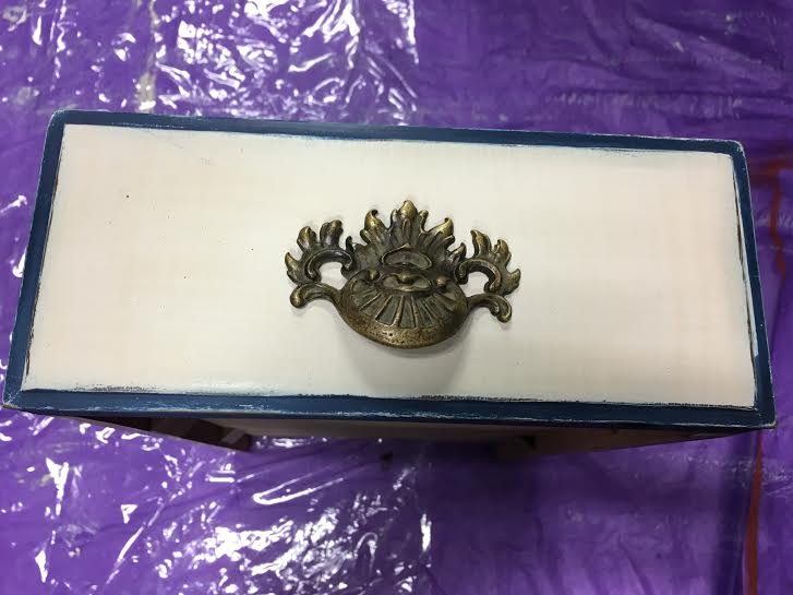 Next – the wood. The wood was in really good shape, just bleached out and dry. Wise Owl Salve in White Tea scent to the rescue! We don’t sell this product ourselves, but I love it and have used it to rehydrate wood and as a sealer on several projects. It comes in several wonderful scents! I purchase mine through a fellow painter in Massachusetts. I was fortunate to meet Sarah, of the Princess and the Peacock, while on a trip to visit my cousin, who lives about 30 minutes from her shop! I’ve linked her name to the Wise Owl Salve section of her online shop.