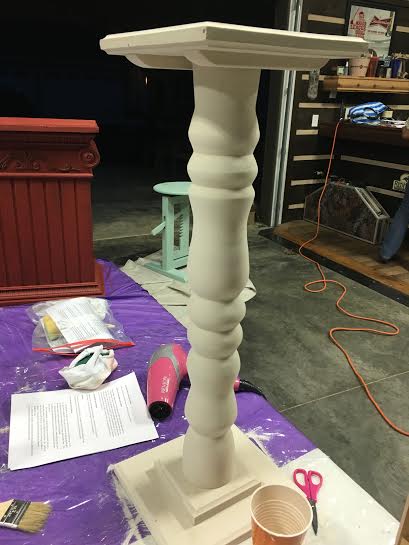 This table base is painted with Missouri Limestone Paint Company “Grannie’s Lace” and is now waiting for a new table top.