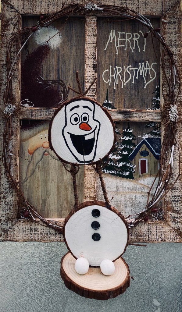 The birch round came from a fallen branch and that cute bird I found in a thrift store. The faux flowers came with the birdcage.