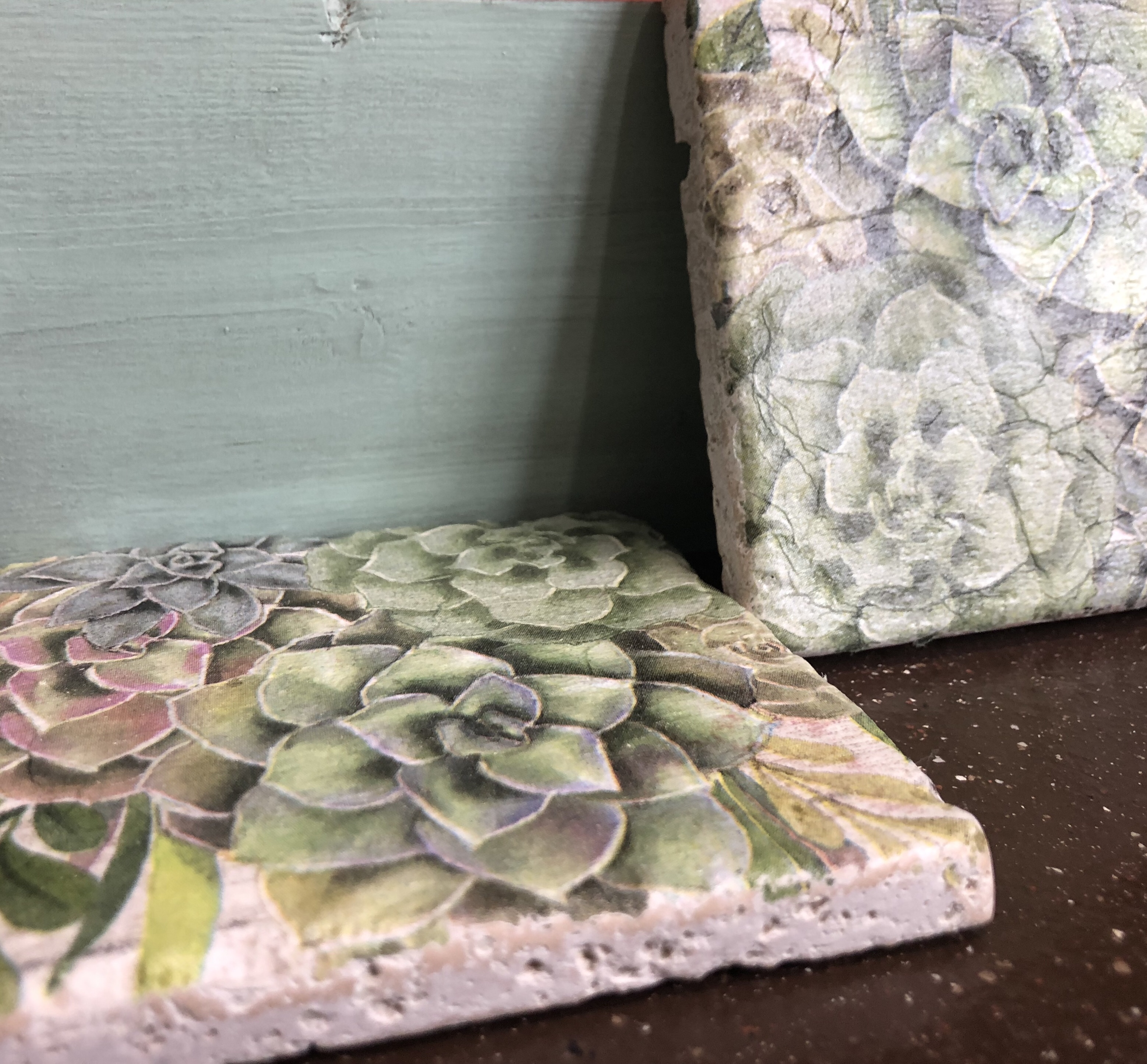 Step 4: Once the Mod Podge was dry, I gave it two more coats to seal the napkin well. When the final coat was dry, I applied a coat of water based polyurethane just for a bit more protection.