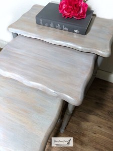 These nesting tables had been waiting patiently for me to work the gray weathered wood magic on them. The time was now.