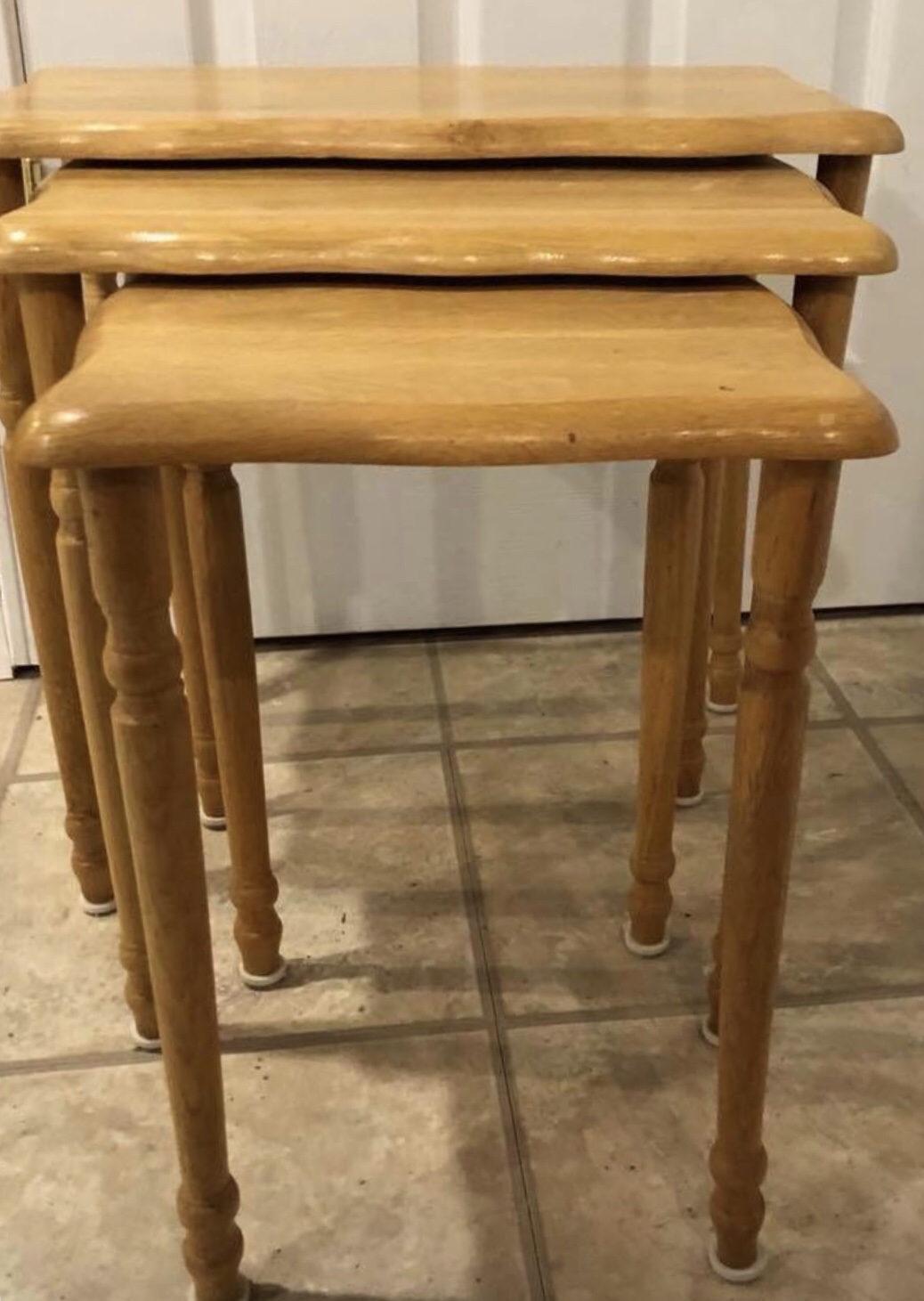 These nesting tables had been waiting patiently for me to work the gray weathered wood magic on them. The time was now.