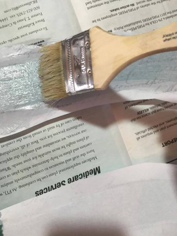 After the first peel, I  used a rough texture wet washrag and carefully rubbed away the rest of the paper.  I let dry just a bit (ok….maybe used a blast or two from the hair dryer) so I could see if there was any paper left.  There was, so I used the wet rag to rub some more.